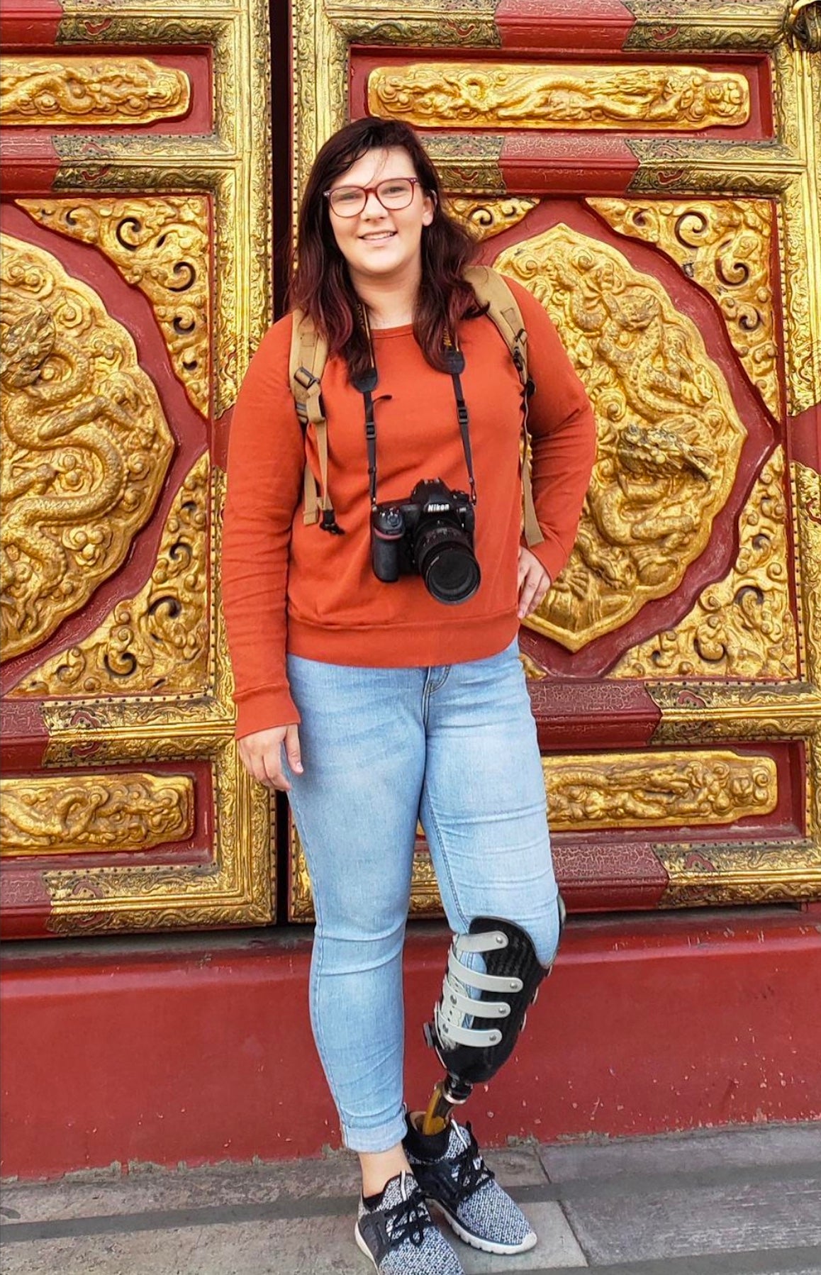 And this is me a couple weeks before I wasn't able to wear my prosthetic anymore. All because I wanted to wear a pair of jeans. Nothing would fit over my prosthetic and I was sick of sweatpants, so I was cutting the leg off and stuffing it into my socket. (Spoiler alert - not a good idea!) I developed sores and was off of my leg for months.
