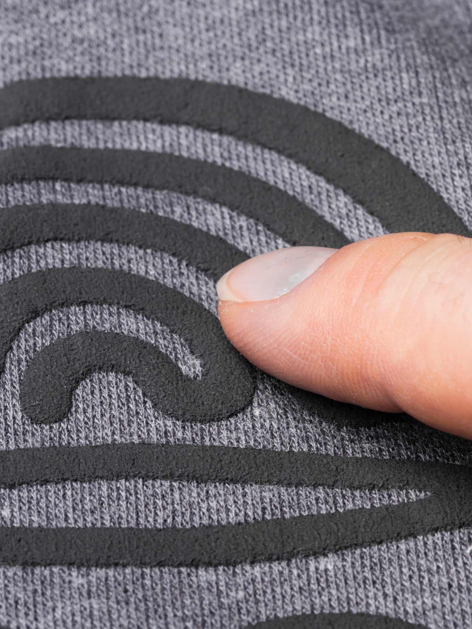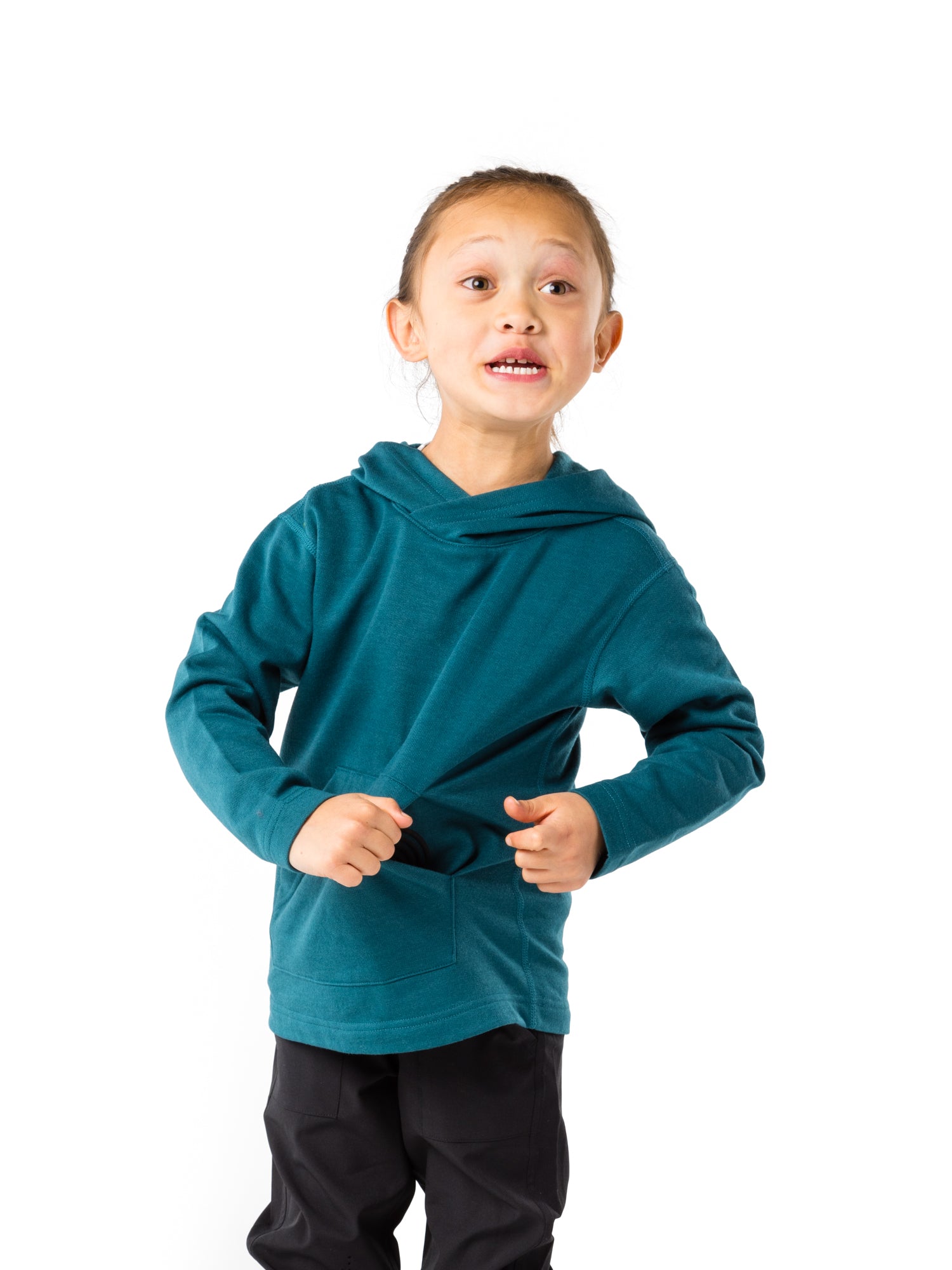 - Fidget feature hidden in the kangaroo pocket allows the wearer to discreetly trace the design for calming or focus.