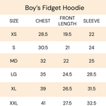Whether you're looking to unwind after a long day or need a comforting layer for outdoor activities, our Boy’s Fidget Hoodie is your go-to choice. With its thoughtful design and cozy fabric, it’s more than just a hoodie – it's a tool for comfort and peace. Enhance your wardrobe with this essential piece that brings both style and sensory benefits to your everyday life.