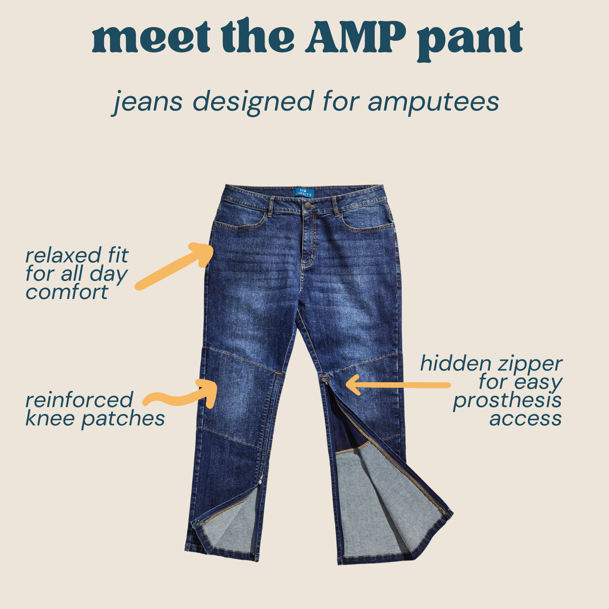 Hidden zipper on both legs so you can make adjustments to your prosthesis throughout the day