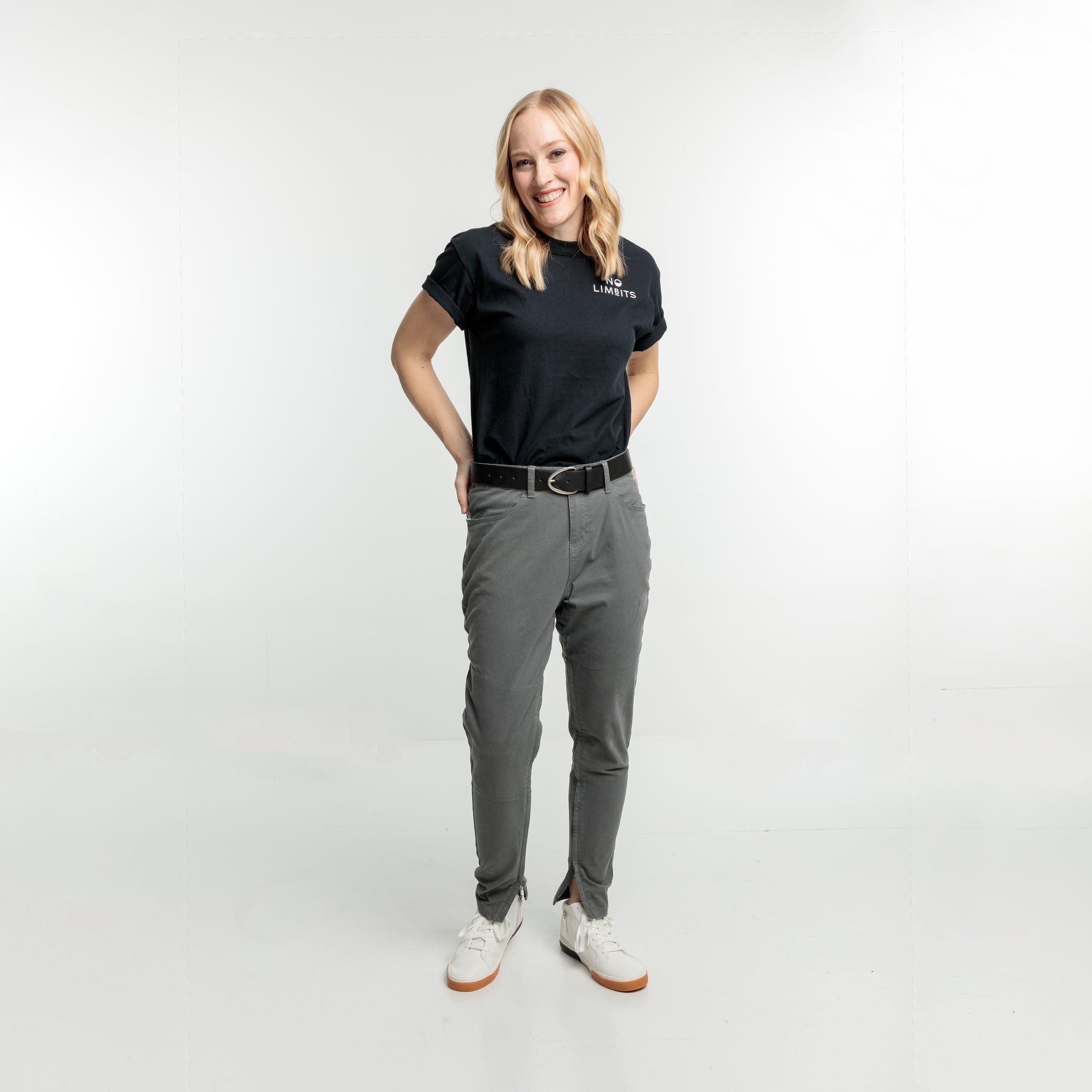 Hidden zipper on both legs so you can make adjustments to your prosthesis throughout the day